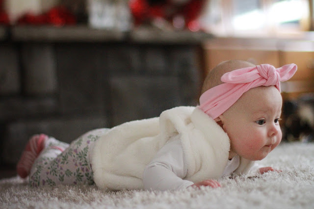 Speaking of swaddles, the girl still loves her swaddle and won't sleep without it. She loves to have her face right against the mattress (a side sleeper in the making!) and a couple times has gotten a little overzealous and rolled over, which she hated and I panicked about. The first time it happened I tried training her to sleep without a swaddle and it just wasn't ideal, so I watched the baby monitor like a hawk to make sure it didn't happen again. She must have learned her lesson because she's been flat on her back ever since. Let's pray it stays that way.